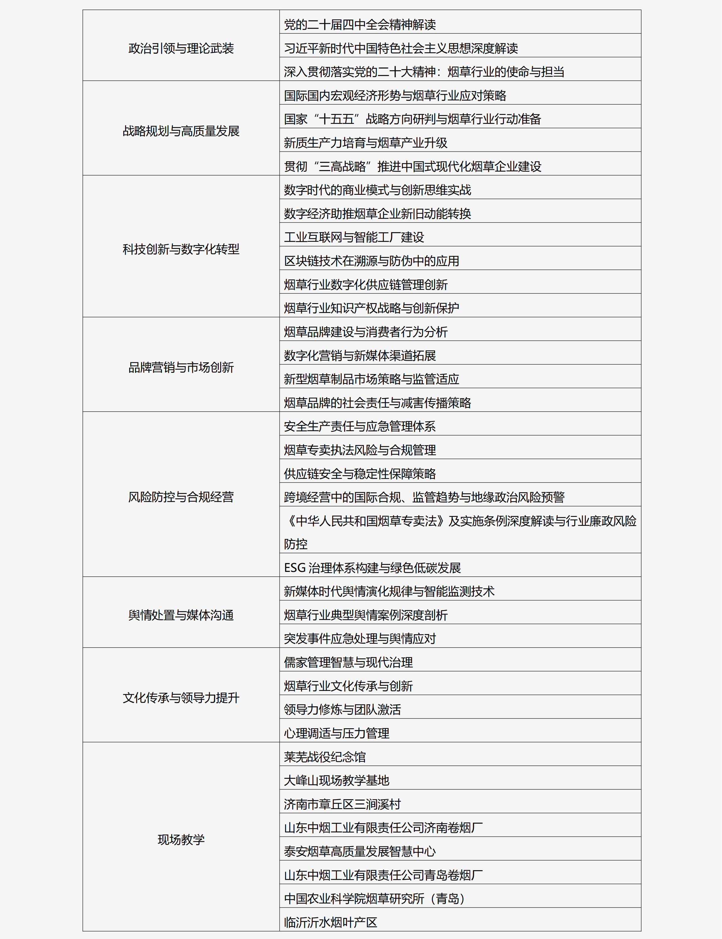 当前,烟草行业正处于新旧动能转换、全力推动高质量发展和现代化建设的关键阶段。打造一支“忠诚干净担当的高素质专业化干部队伍”是实现行业发展目标的重要举措。为此,山东大学依托自身学科优势、跨学科资源与成熟的干部培训体系,紧密围绕国家最新政策导向与烟草行业核心发展目标设计了该培训专题。专题旨在通过系统的理论教学、前沿的案例研讨、深入的实地调研以及结构化互动,系统化提升干部的政治素养、战略思维与履职能力、创新意识与改革动能、风险防控能力等,为“加快建设现代化产业体系”“培育和发展新质生产力”“进一步全面深化改革”等一系列行业重大战略部署的落地生根提供坚实保障。